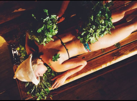 In the middle of the banya, there is a treatment table, for guests who would like to enjoy the parenie – an invigorating thermal massage, that uses leafy and fragrant bundle of birch, oak or eucalyptus twigs. It is a must see – to watch the banya master as they direct the steam with the bundle of leaves like an orchestra chef, and apply the massage with poetic movements.